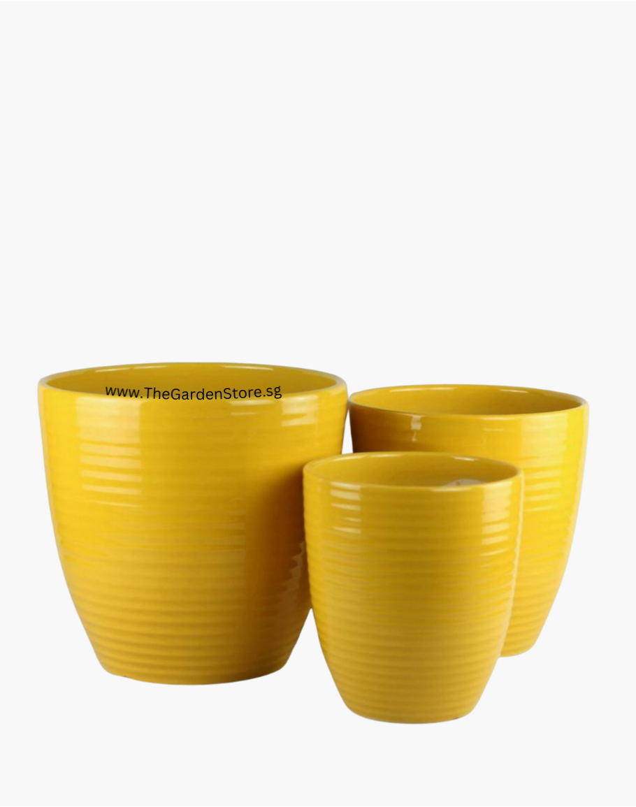 Line Design Yellow Ceramic Pot