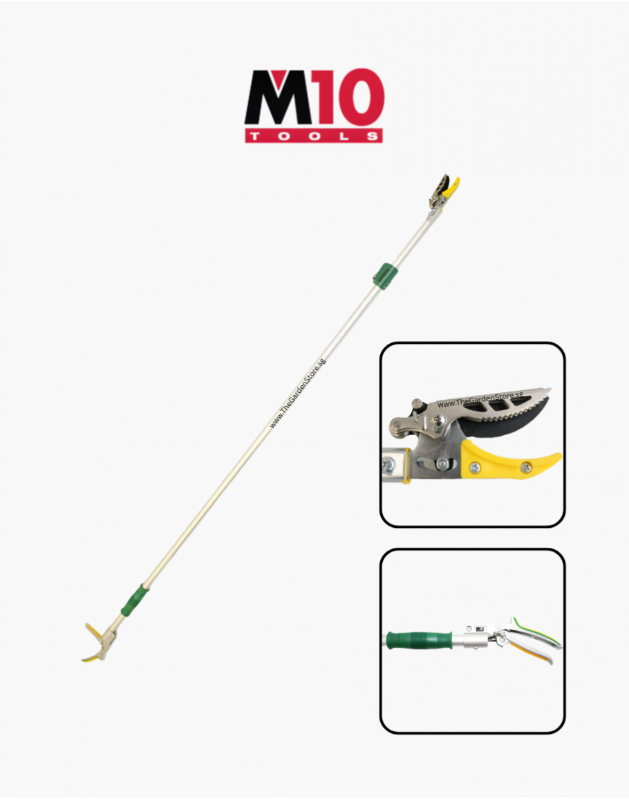 Pick high and hard-to-reach fruits safely without climbing ladders or waiting for them to fall. The M10 Fruit Picker comes with a 3-metre extendable handle and a spring-loaded cut-and-hold clip that grips the fruit firmly as it is cut, preventing bruising and dropping.
